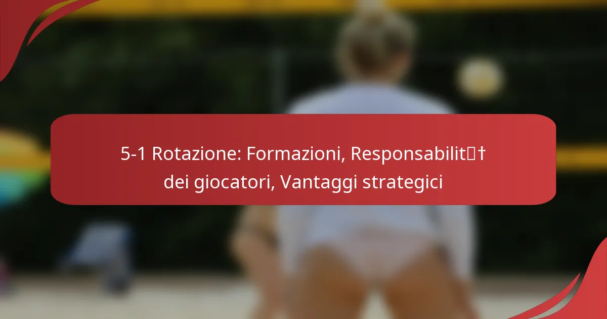 La rotazione 5-1 è una formazione tattica comunemente utilizzata in sport come la pallavolo e il basket, dove cinque giocatori sono posizionati strategicamente mentre un giocatore ruota attraverso vari ruoli. Questa configurazione non solo migliora le capacità offensive e difensive, ma consente anche alle squadre di sfruttare i propri punti di forza contro le debolezze degli avversari. Ogni giocatore ha responsabilità definite, con un unico palleggiatore che gestisce la creazione di gioco durante tutta la partita, portando a migliori opportunità di punteggio e a un movimento della palla efficace.