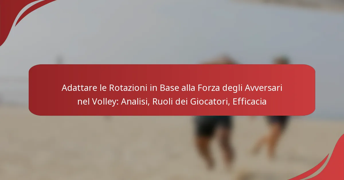 Adattare le rotazioni nel volley in base ai punti di forza degli avversari implica analizzare le loro capacità e modificare le posizioni dei giocatori per sfruttare le debolezze. Le strategie chiave includono la valutazione delle prestazioni dell’avversario, l’identificazione dei cambiamenti necessari, l’implementazione di aggiustamenti tattici e la valutazione dell’efficacia di queste modifiche.