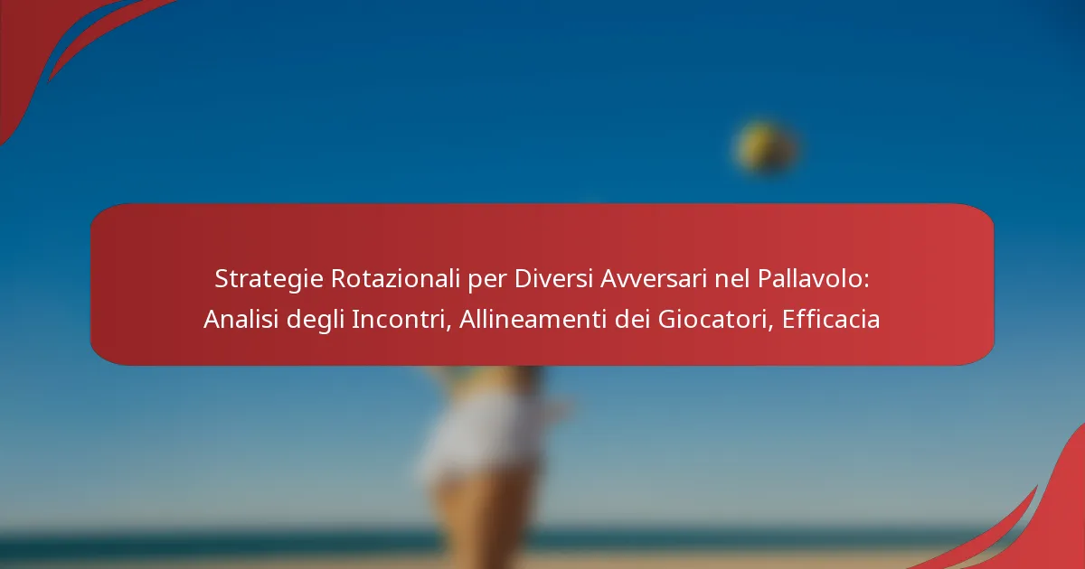 Nel volley, le strategie di rotazione chiave sono essenziali per massimizzare le prestazioni della squadra contro avversari diversi. Regolando sistematicamente i movimenti e gli allineamenti dei giocatori, le squadre possono sfruttare i propri punti di forza mentre approfittano delle debolezze dei rivali. Analizzare le caratteristiche degli avversari è cruciale per sviluppare strategie di accoppiamento efficaci che migliorano il gioco complessivo e l’efficacia durante le partite.