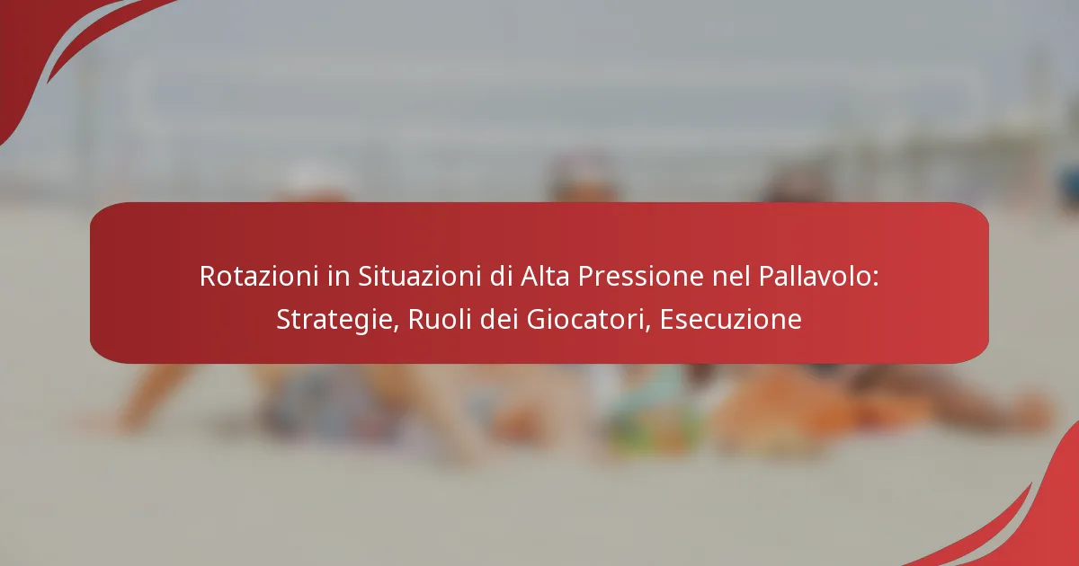 In situazioni di pallavolo ad alta pressione, rotazioni efficaci dei giocatori sono cruciali per mantenere le prestazioni della squadra e adattarsi alle condizioni dinamiche del gioco. Le strategie chiave includono l’utilizzo dei timeout, l’adattamento ai punti di forza degli avversari, l’implementazione di sostituzioni situazionali, la creazione di piani flessibili e l’incorporazione del feedback dei giocatori.